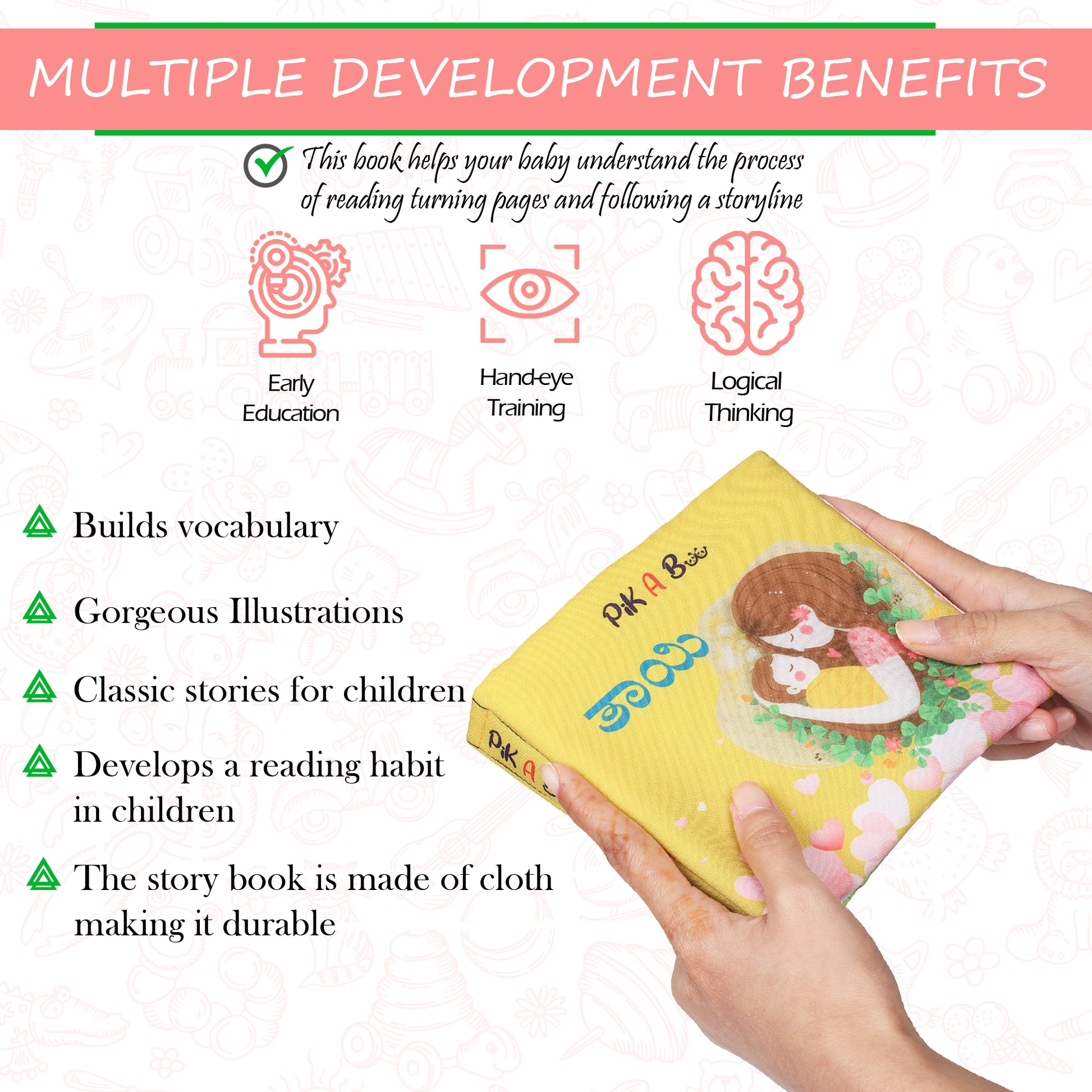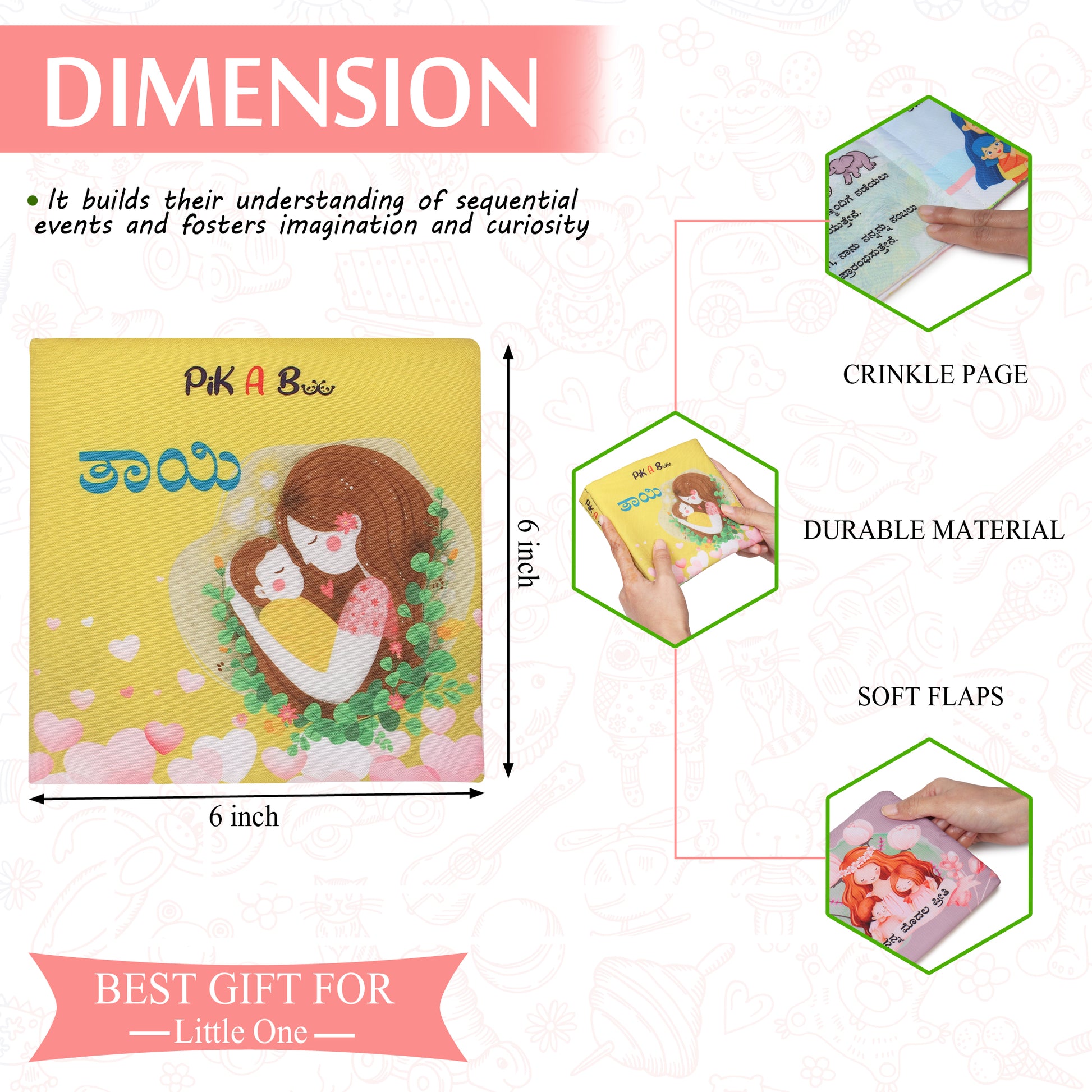 Introduce your child to their mother tongue with the PiK A BOO Amma Kannada Cloth Book. This beautifully designed cloth book features beginner-friendly Kannada story and vocabulary to spark curiosity and cultural bonding. Made from baby-safe, tear-free fabric, it’s perfect for early learners to enjoy soft-touch learning and daily language practice.