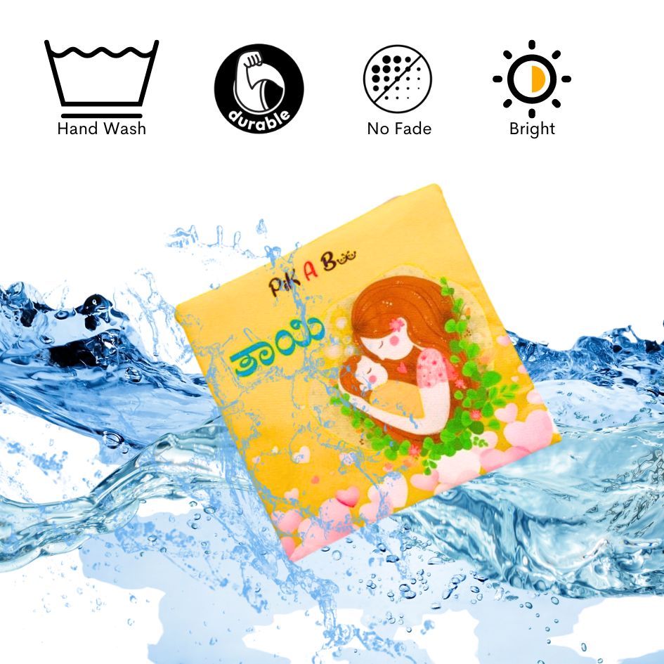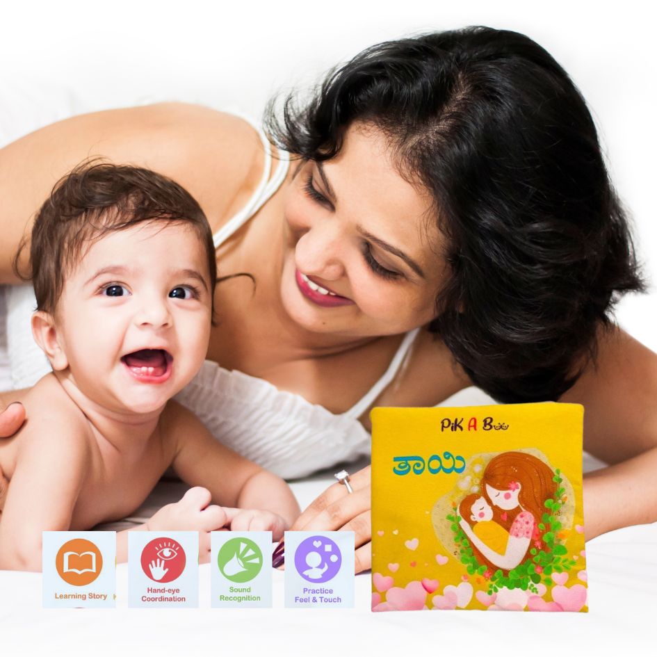 Introduce your little one to the warmth of language and love with the Amma Kannada Cloth Book. Thoughtfully designed for infants and toddlers, this soft fabric book blends early learning with motherly bonding through simple Kannada words and vibrant illustrations.