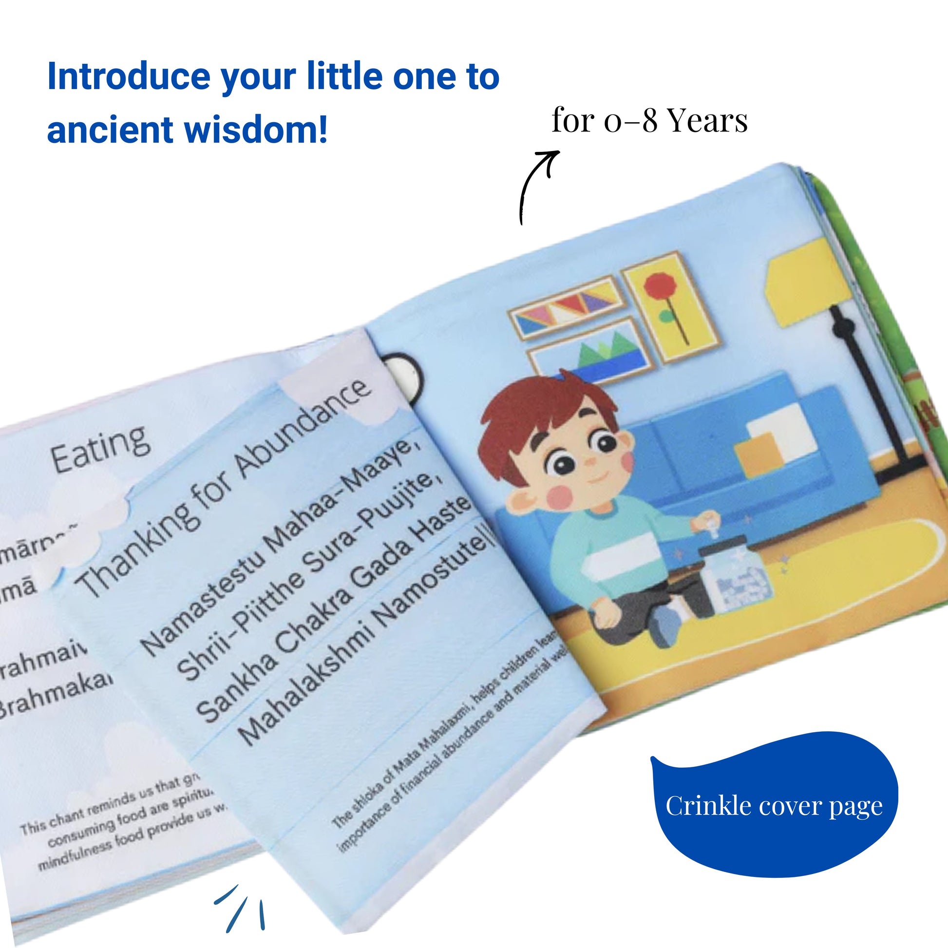 - Cultural & Playful Learning – Combines peek-a-boo play with introduction to shlokas, mantras, and positive daily rituals