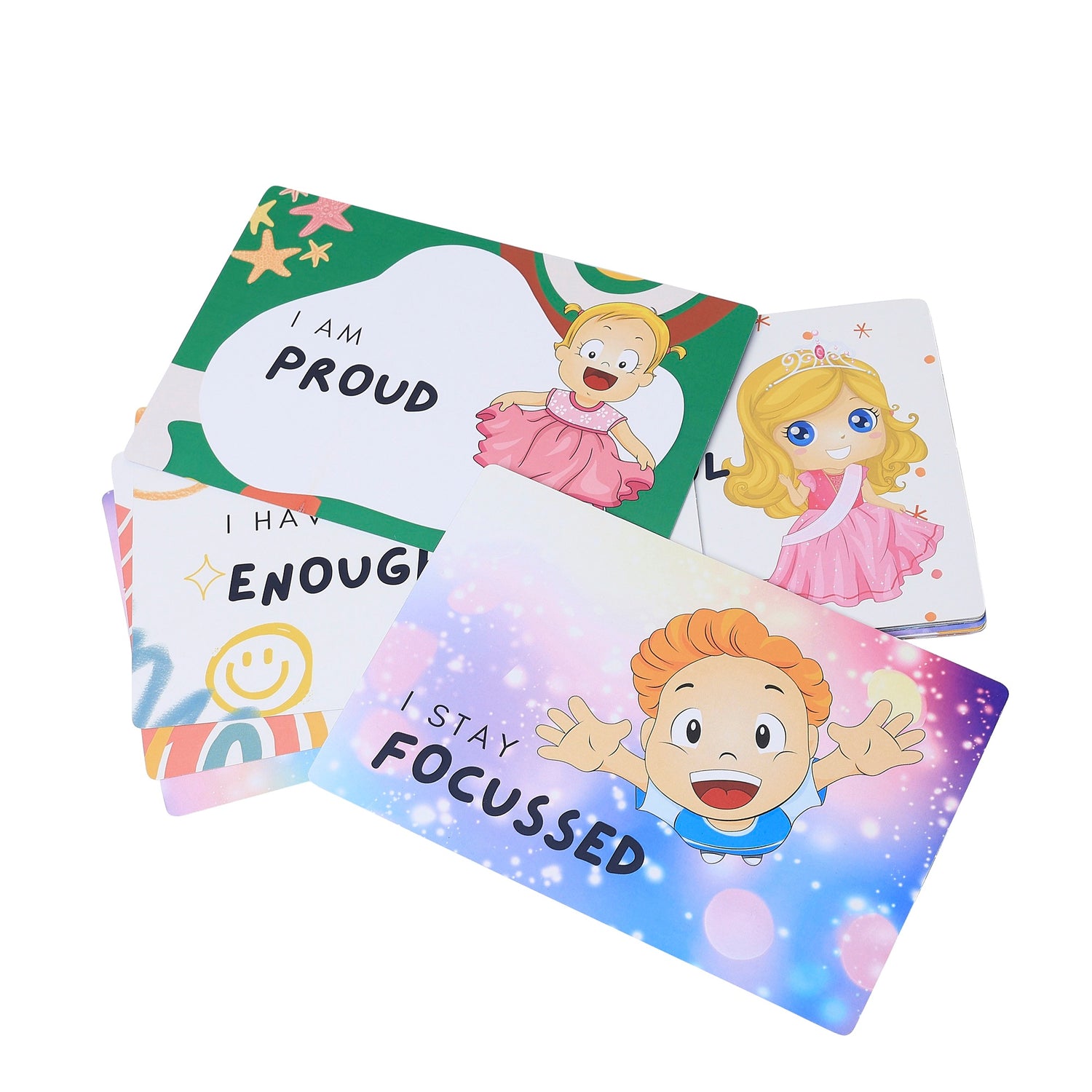 Pick a card daily and read the affirmation aloud with your child.