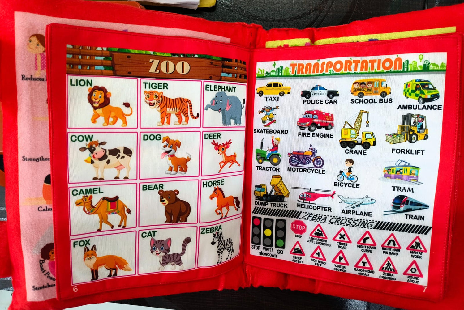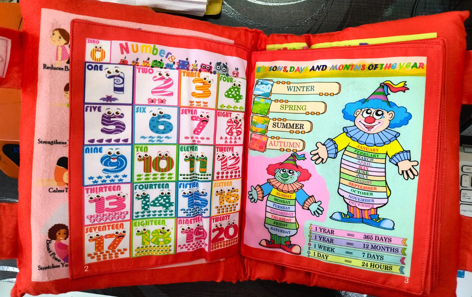 Make early learning cozy and fun with the Pre-School Activity Pillow Book! Designed like a cushion and filled with engaging educational pages, this soft book combines comfort and creativity. It features zippers, buttons, shapes, alphabets, and more – all stitched securely for little hands to explore safely.