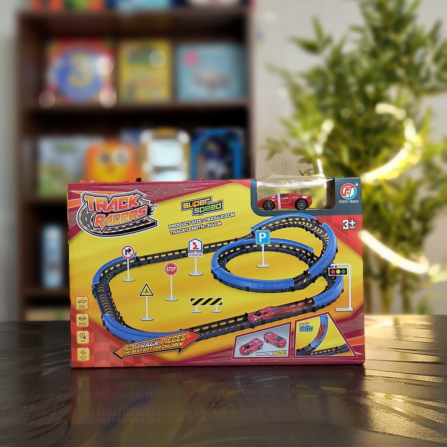 Fuel up the fun with this 43-Piece Race Car Track Set! Kids can build, assemble, and race their own speedy circuits, sparking creativity and hands-on learning. The kit includes easy-to-connect track pieces, a mini race car, ramps, and accessories for high-speed thrills. Great for solo or group play, this build-and-play set helps develop problem-solving, coordination, and imaginative storytelling skills. Perfect for ages 3+!