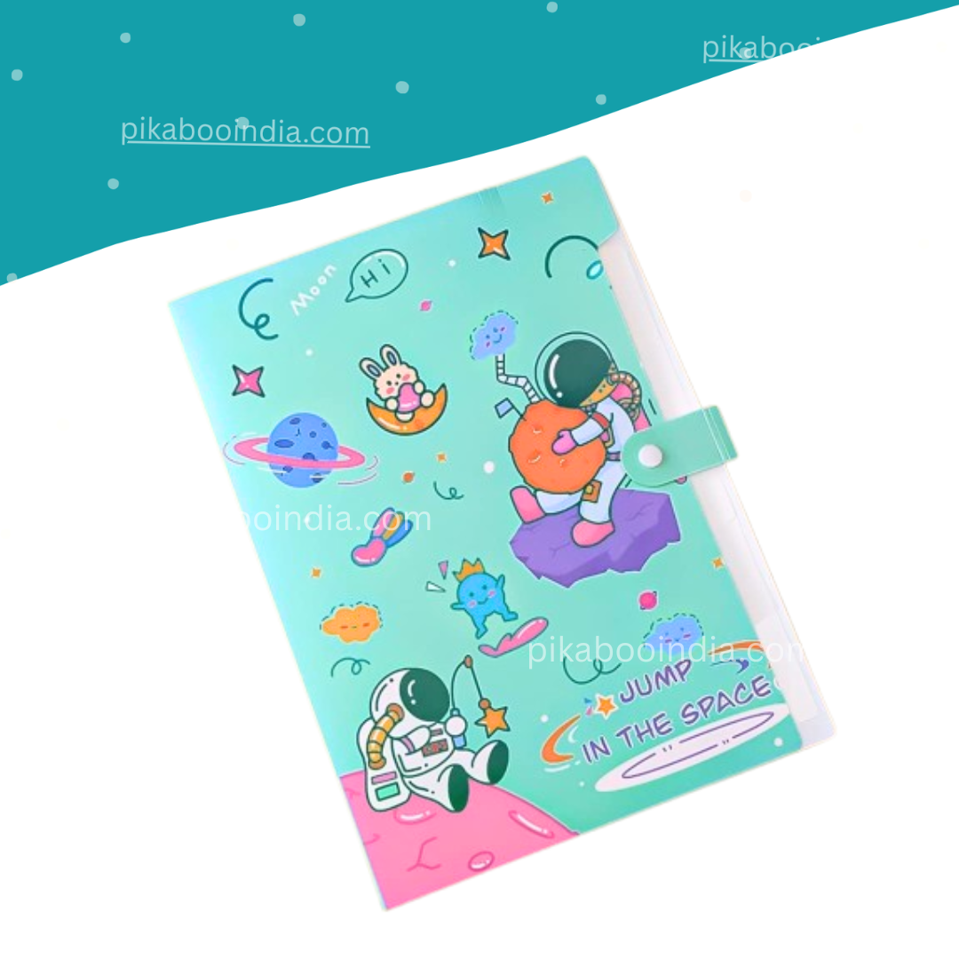 Space Theme File Folder – Documents Organizer with Button Lock for Kids & Office