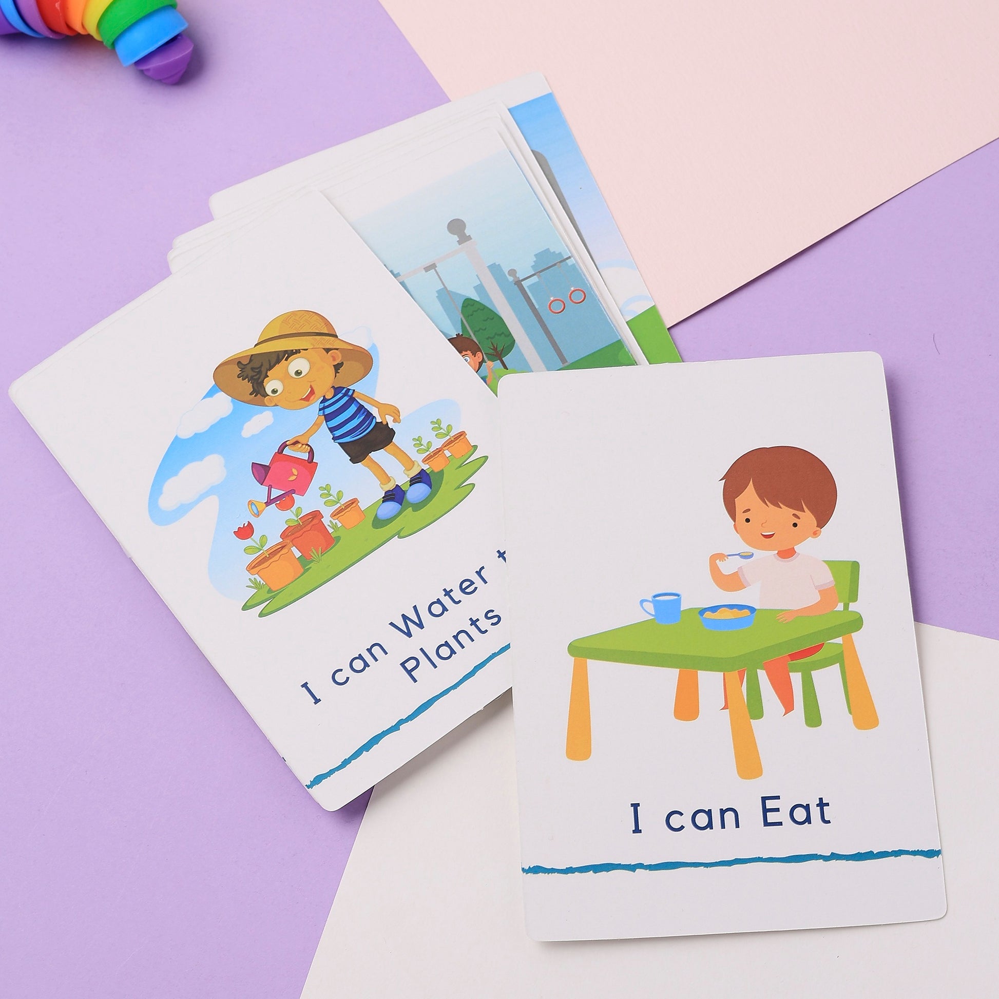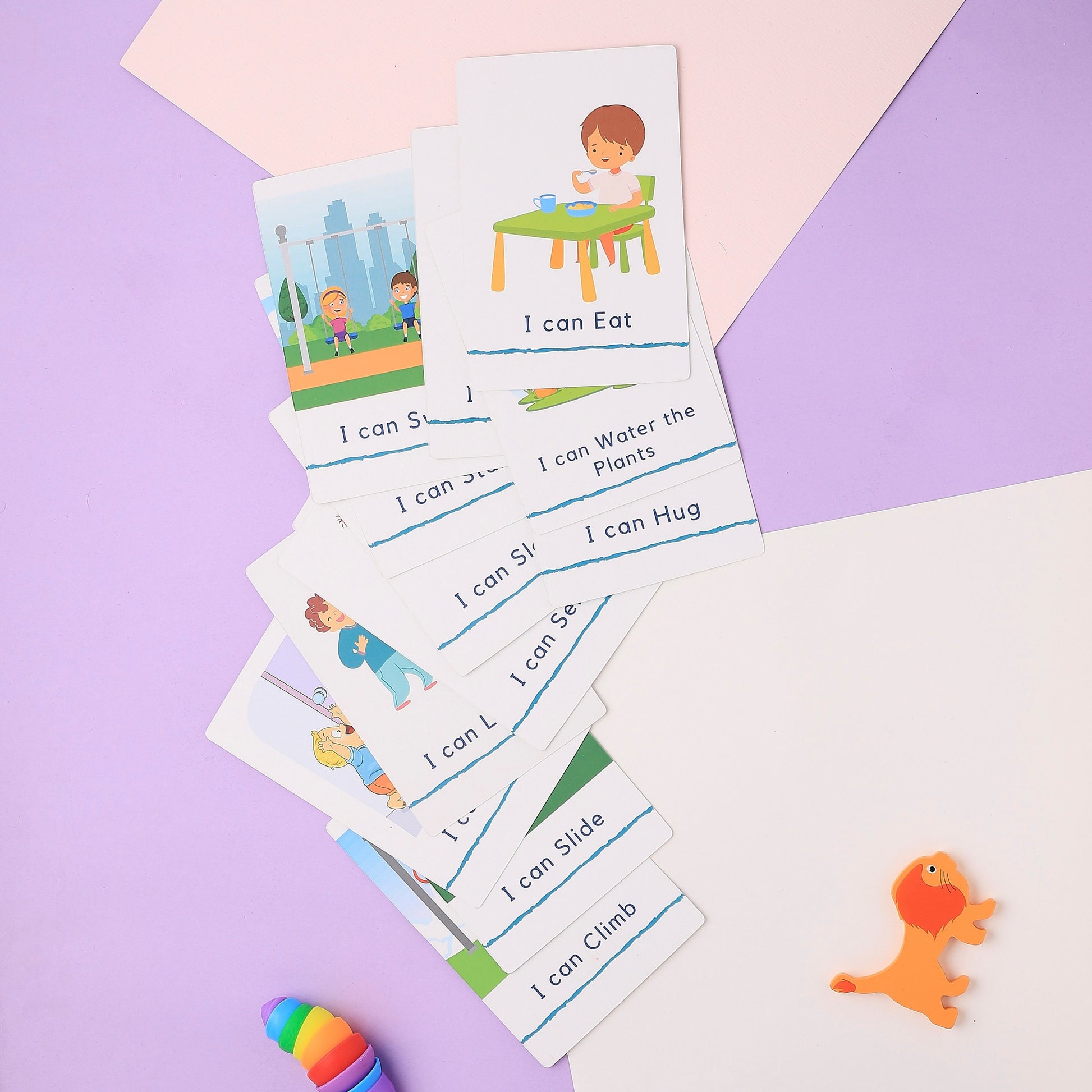 PiK A BOO Verbs & Positive Words Flash Cards | Early Learning for Kids (Set of 14)