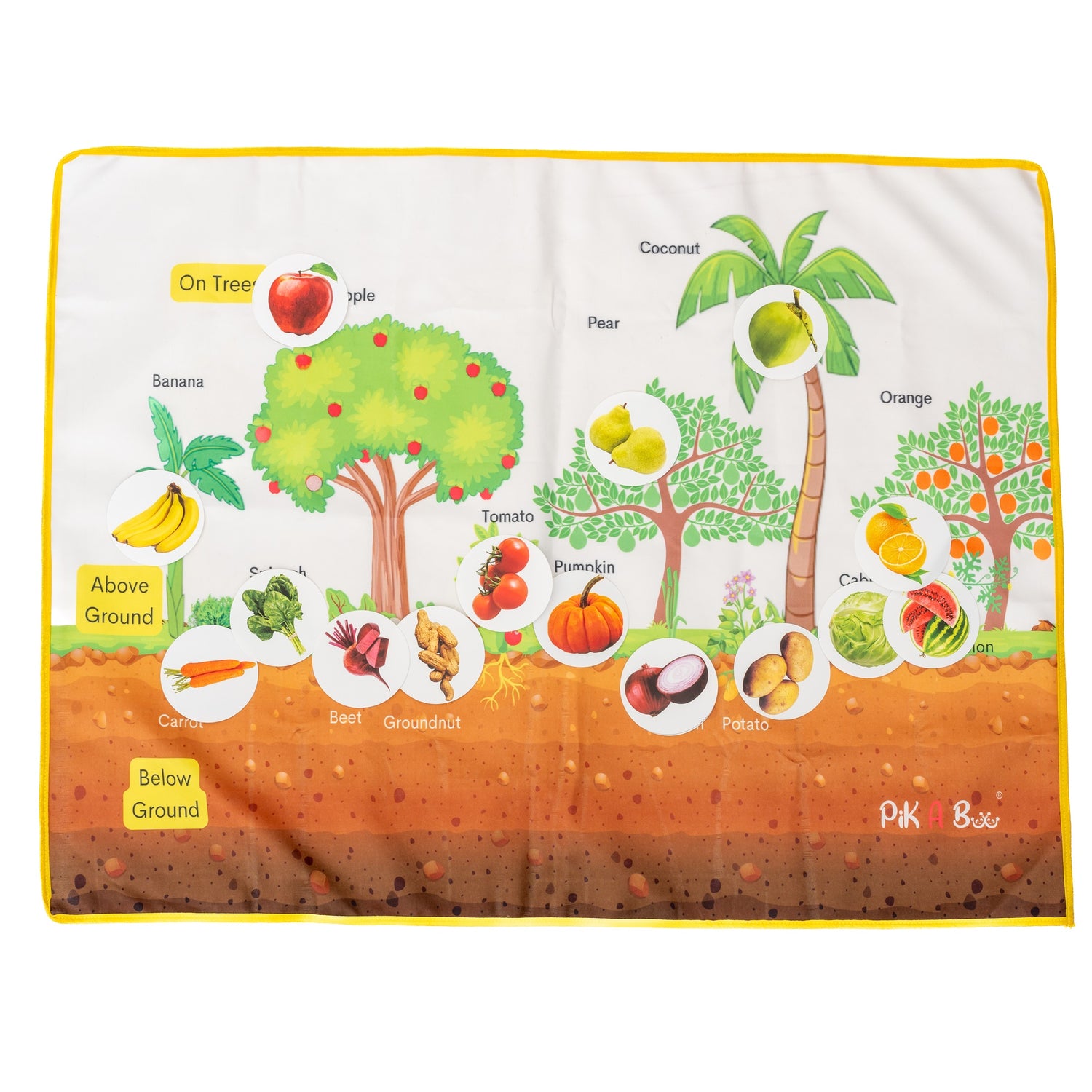 Discover the wonders of nature with the Where They Grow Cloth Activity Mat! This beautifully illustrated 2.2 x 2.10 ft play mat takes kids on a learning journey through plants, fruits, vegetables, and their natural growth environments.
