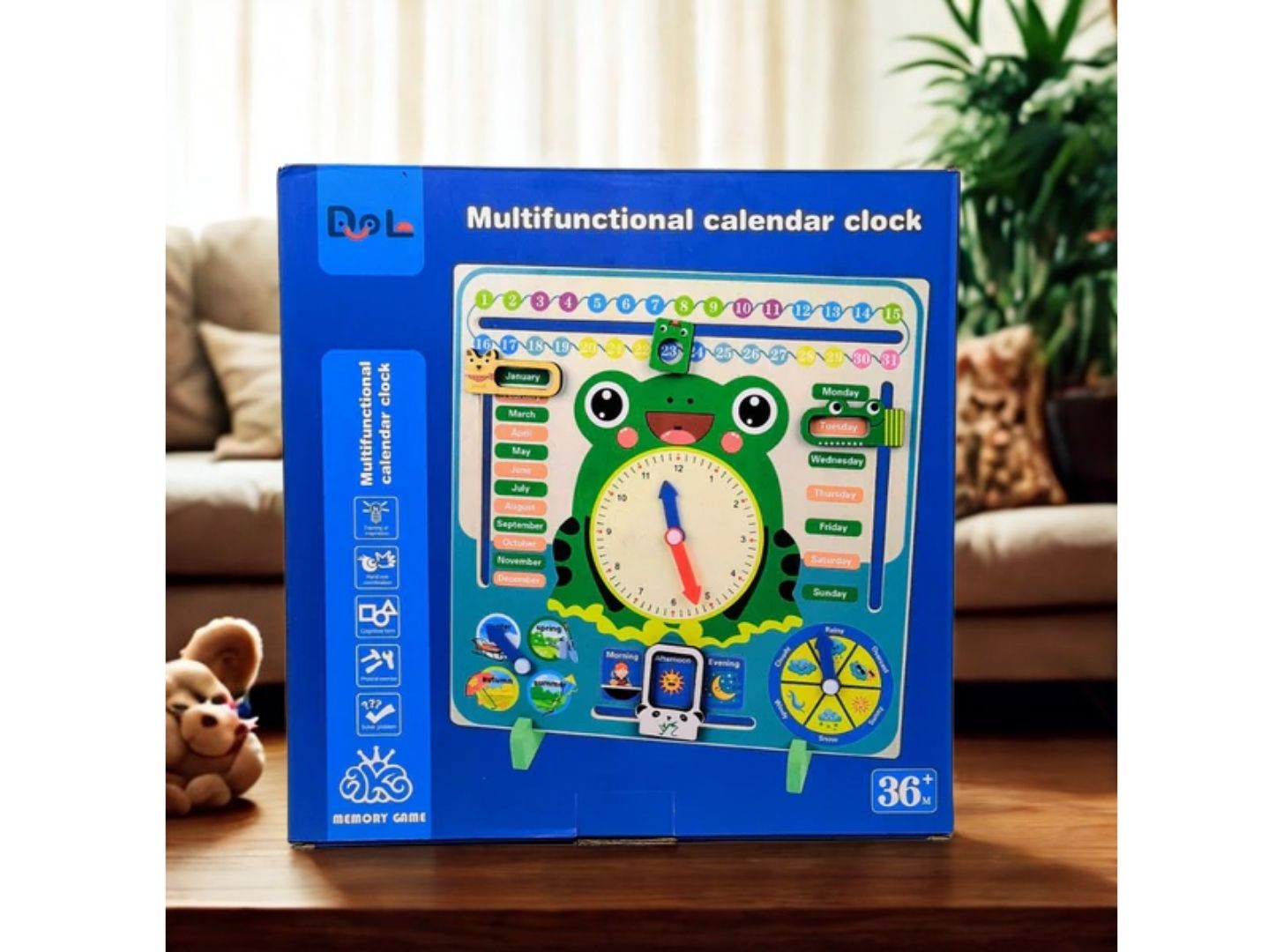 Make learning fun and interactive with the Wooden Frog Learning Clock Set – a colorful and engaging educational calendar toy designed to teach kids about time, days, months, weather, and seasons. Shaped like a cheerful frog, this all-in-one learning board is perfect for children aged 3 years and up.