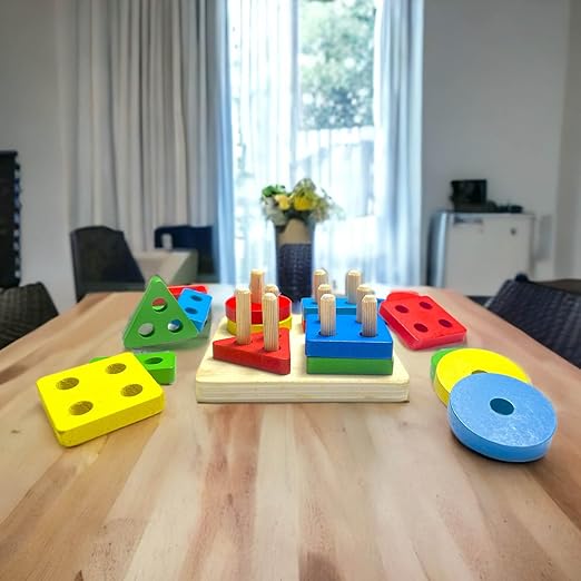 Encourage hands-on learning with this Wooden Shape Sorter Stacking Toy – a vibrant educational puzzle designed to support toddler development through play. With colorful geometric blocks and sturdy pegs, this classic Montessori-inspired toy promotes shape recognition, sorting, and stacking in a fun, safe, and screen-free way.